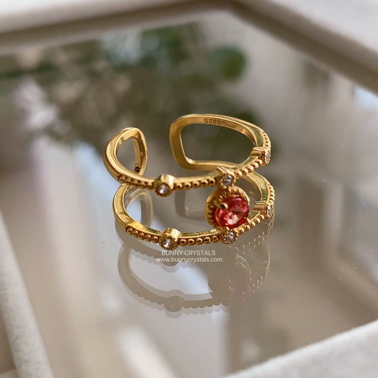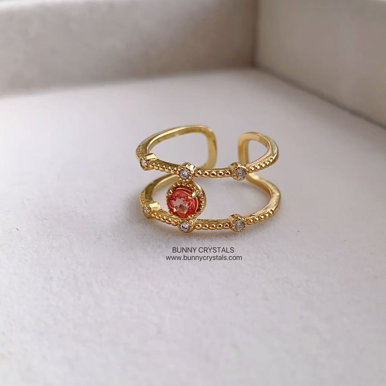 🧡 Designed with a double band open ring style, accented with delicate beaded details and tiny stones