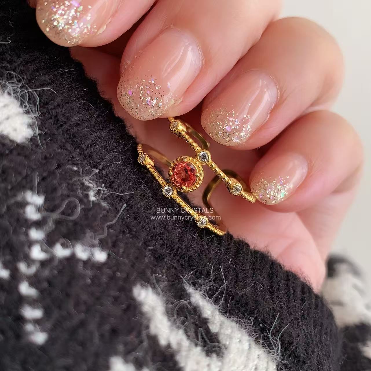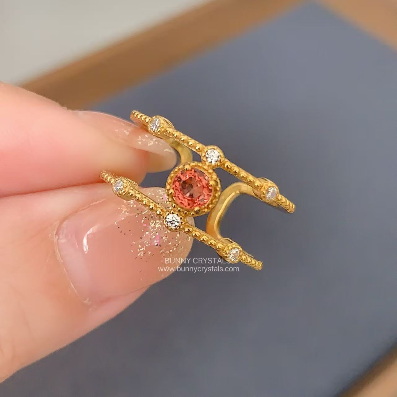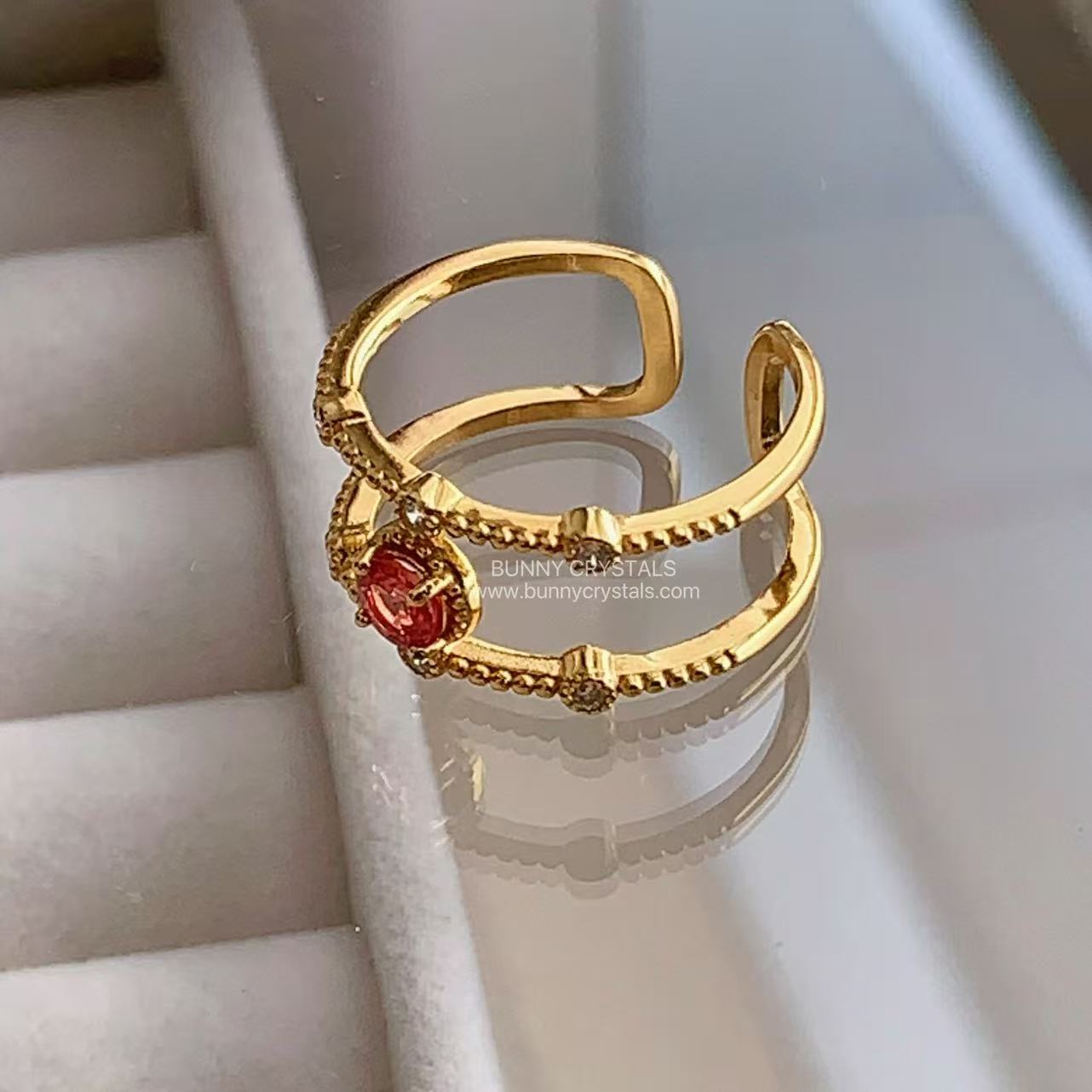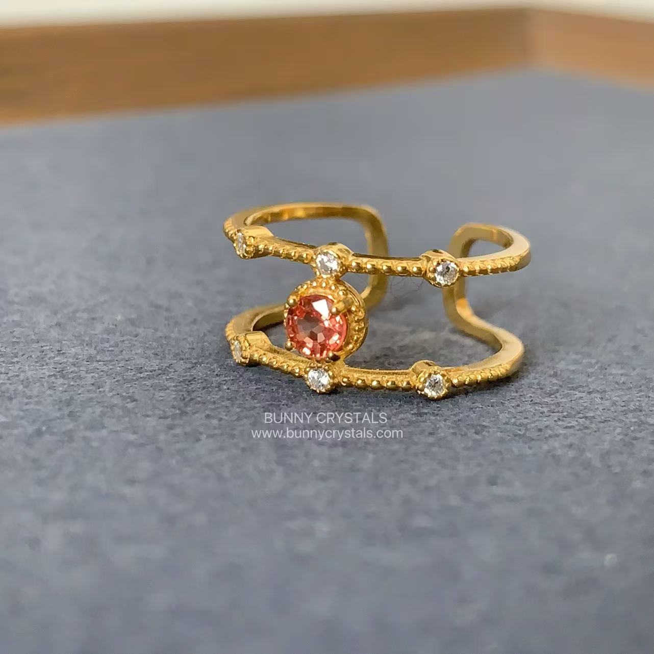 橙红碧玺开口戒|双层轻奢设计|日落橘红能量石|显白气质戒指|可调节戒围