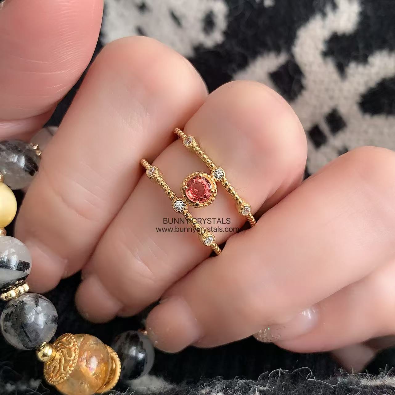🧡双层开口设计,搭配细致珠边与小钻点缀,整体风格轻奢又带一点复古感,日常或约会都很好搭配。