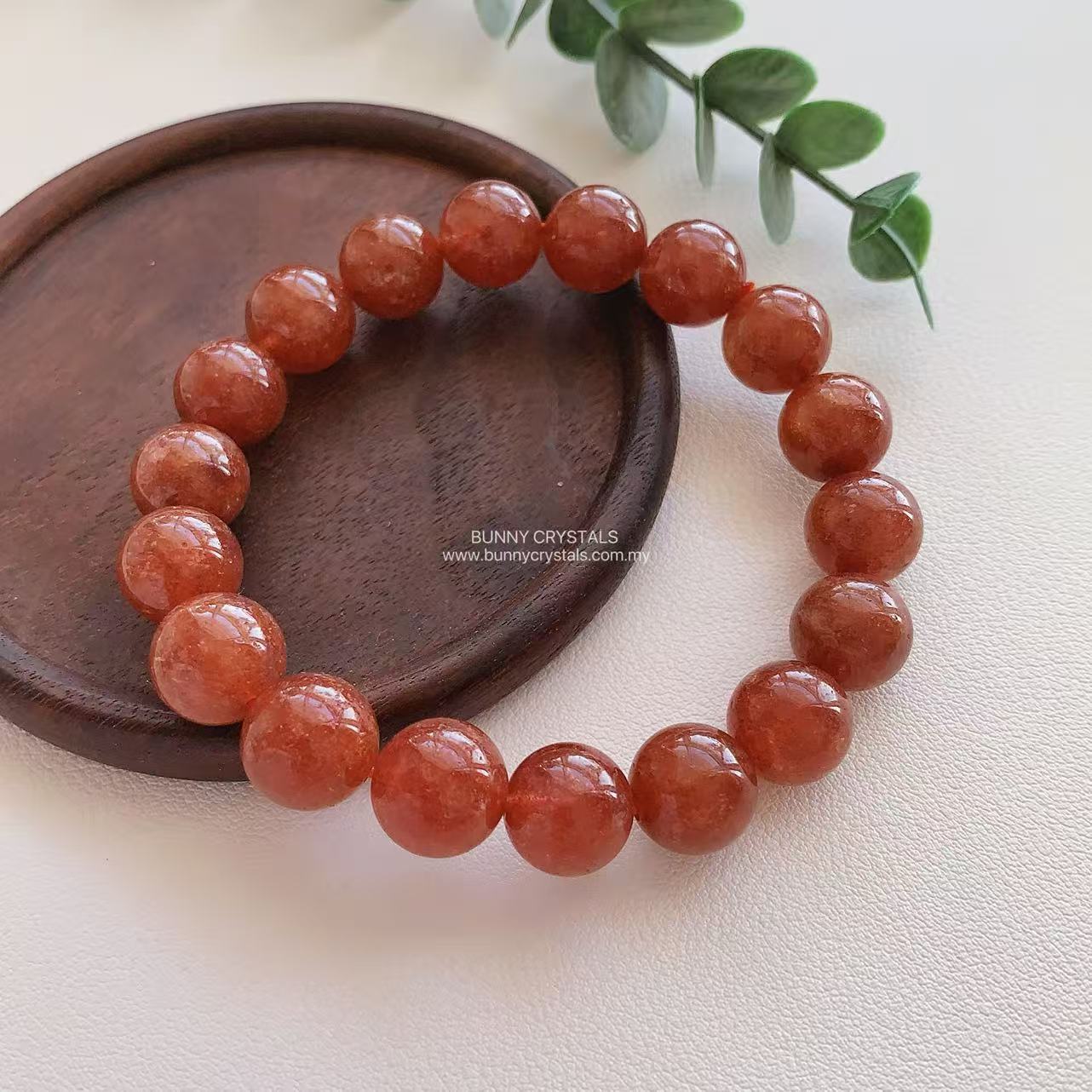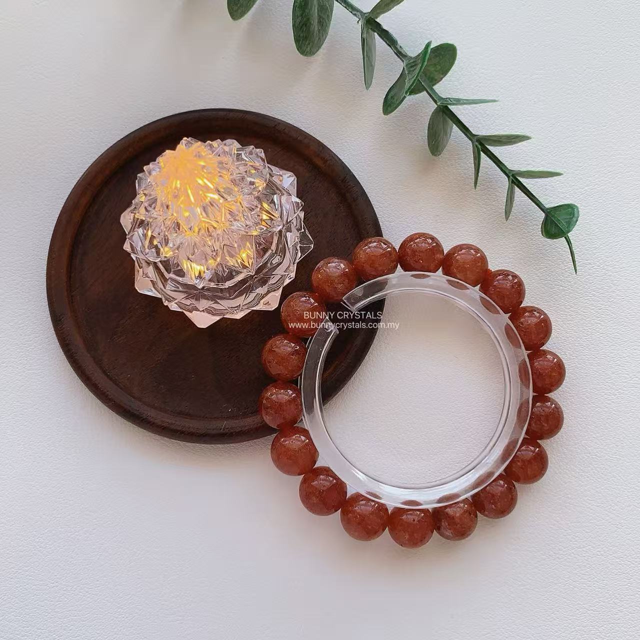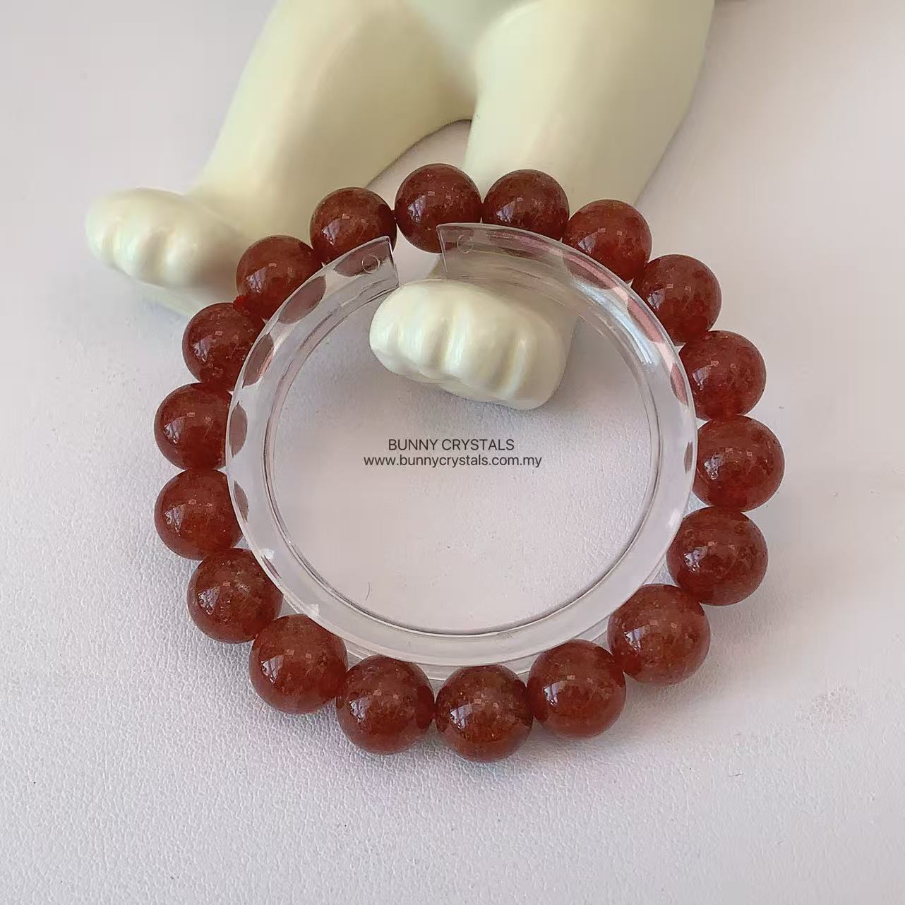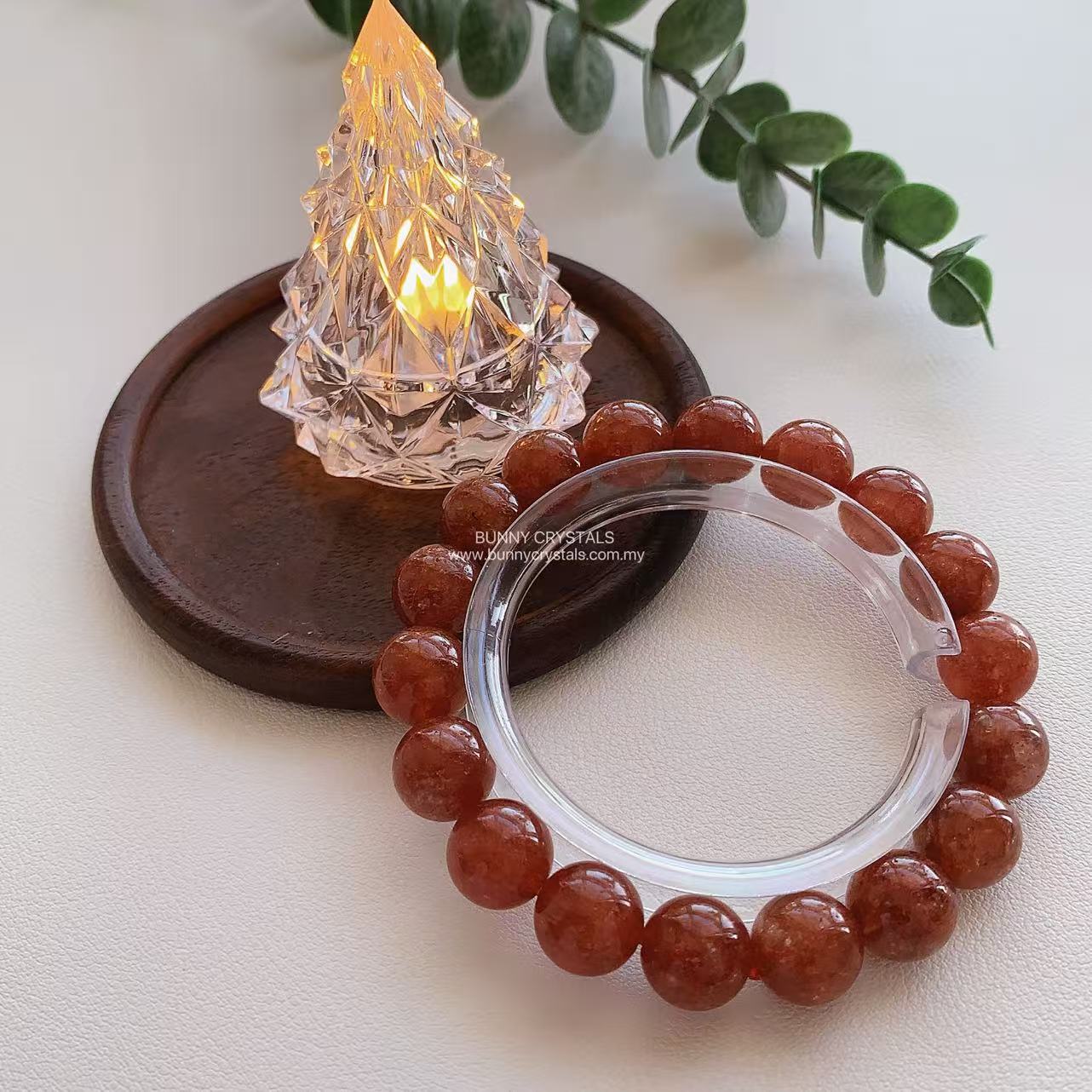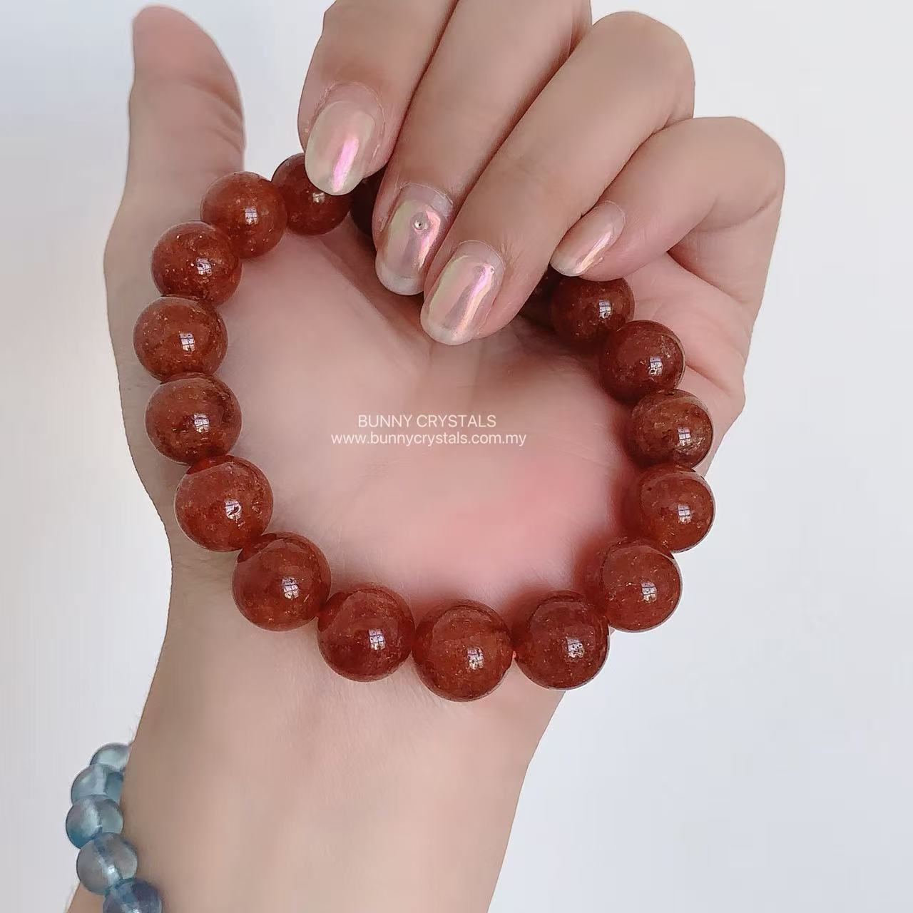 🍓🔴 老矿草莓胶花手串的功效(Strawberry Hematoid Quartz – Old Mine Grade)