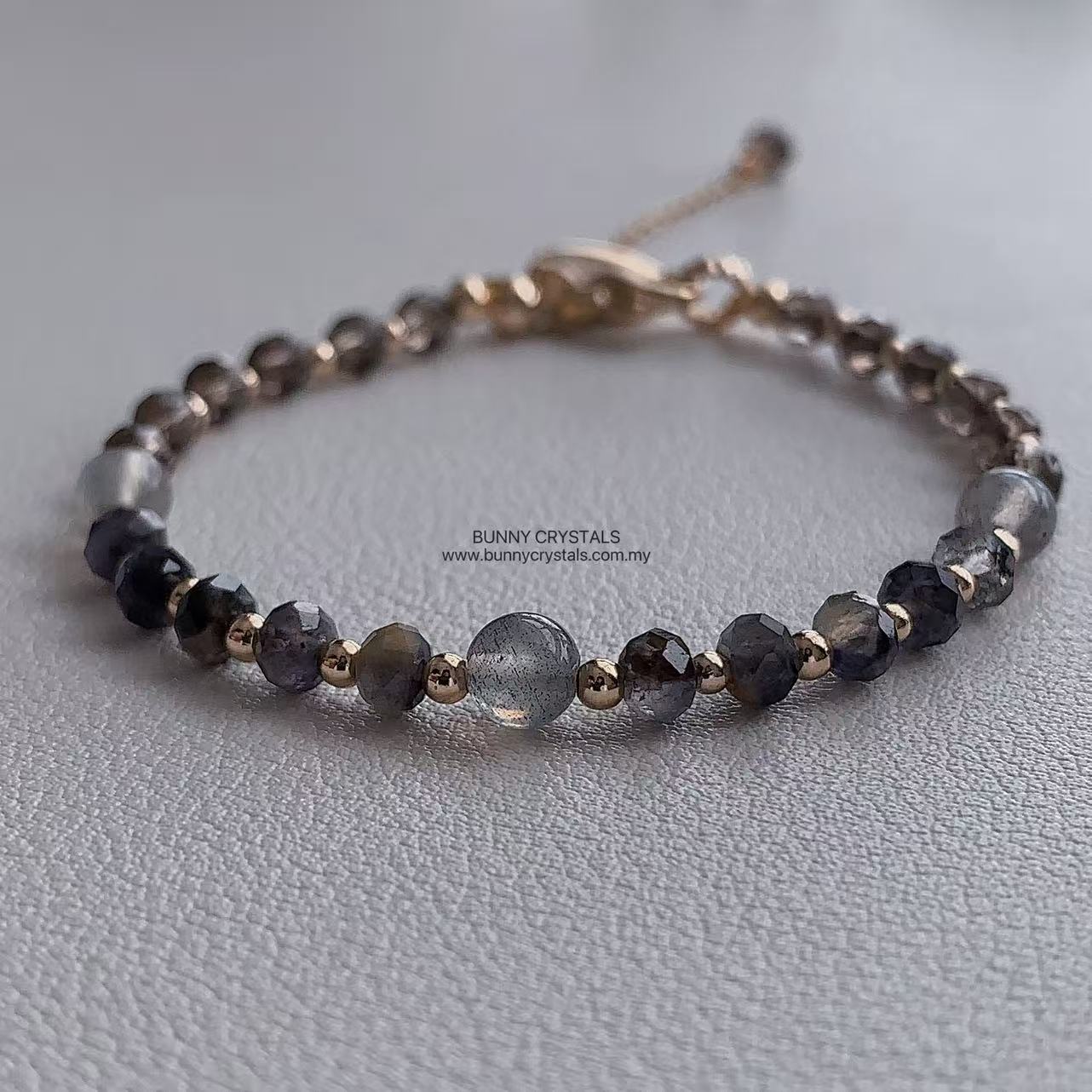 💎 Gemstone Benefits – Iolite, Gray Moonstone & Smoky Quartz Bracelet